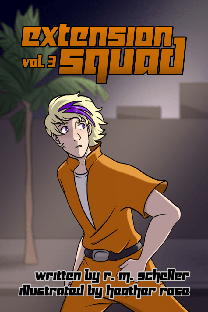 Hello, everyone! I have a super exciting announcement to make! If you’ve been around the blog long enough, you’ll know that one of my favorite book series is the Extension Squad by R.M. Scheller. Well, soon, the third volume in the series is coming out! I’m on the street team for it and I’m so excited! *bounces*